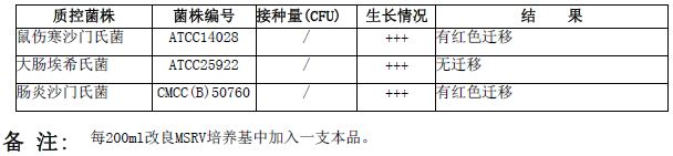 改良MSRV添加剂(新生霉素2mg)微生物灵敏度试验: