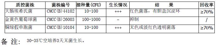 紫红胆盐葡萄糖琼脂培养基(袋装即用型)(200ml)(药典)微生物灵敏度试验: