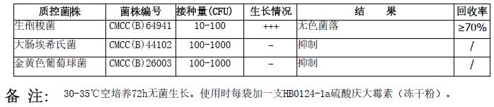 哥伦比亚琼脂培养基(袋装即用型)(200ml)(中国药典)微生物质控结果: