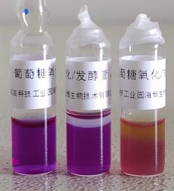 图3 生化鉴定试验结果(左管:空白对照管,右管:试验管) |