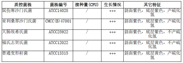 按标签用法制备培养基,接种以下质控菌株,放置35±1℃需氧培养24±2小时。