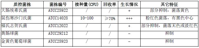 按标签用法制备培养基,接种以下质控菌株,放置36±1℃需氧培养18-24小时。