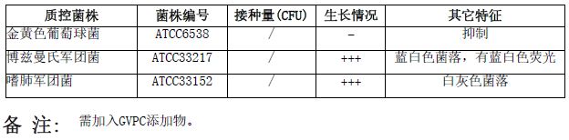 称取本品40.95g,加热溶解于1000ml蒸馏水中,分装三角瓶,每瓶100ml,121℃高压灭菌15分钟,冷至50℃左右时,加入1套GVPC琼脂添加剂,混匀,倾入无菌平皿。