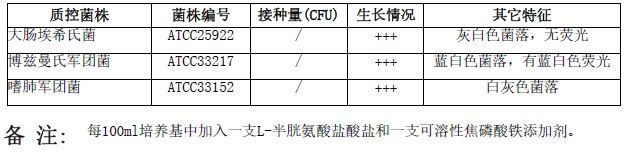 按标签用法制备培养基,接种以下质控菌株,放置36±1℃需氧培养72-168小时。