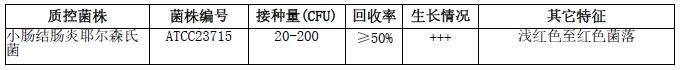 按标签用法制备培养基,接种以下质控菌株,放置20-25℃需氧培养48-72小时。