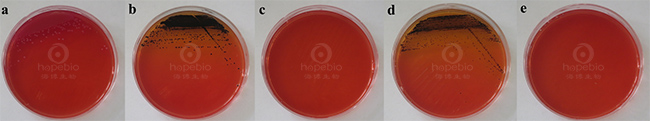 a:大肠埃希氏菌,b:鼠伤寒沙门氏菌,c:金黄色葡萄球菌,d:肠炎伤寒沙门氏菌,e:粪肠球菌